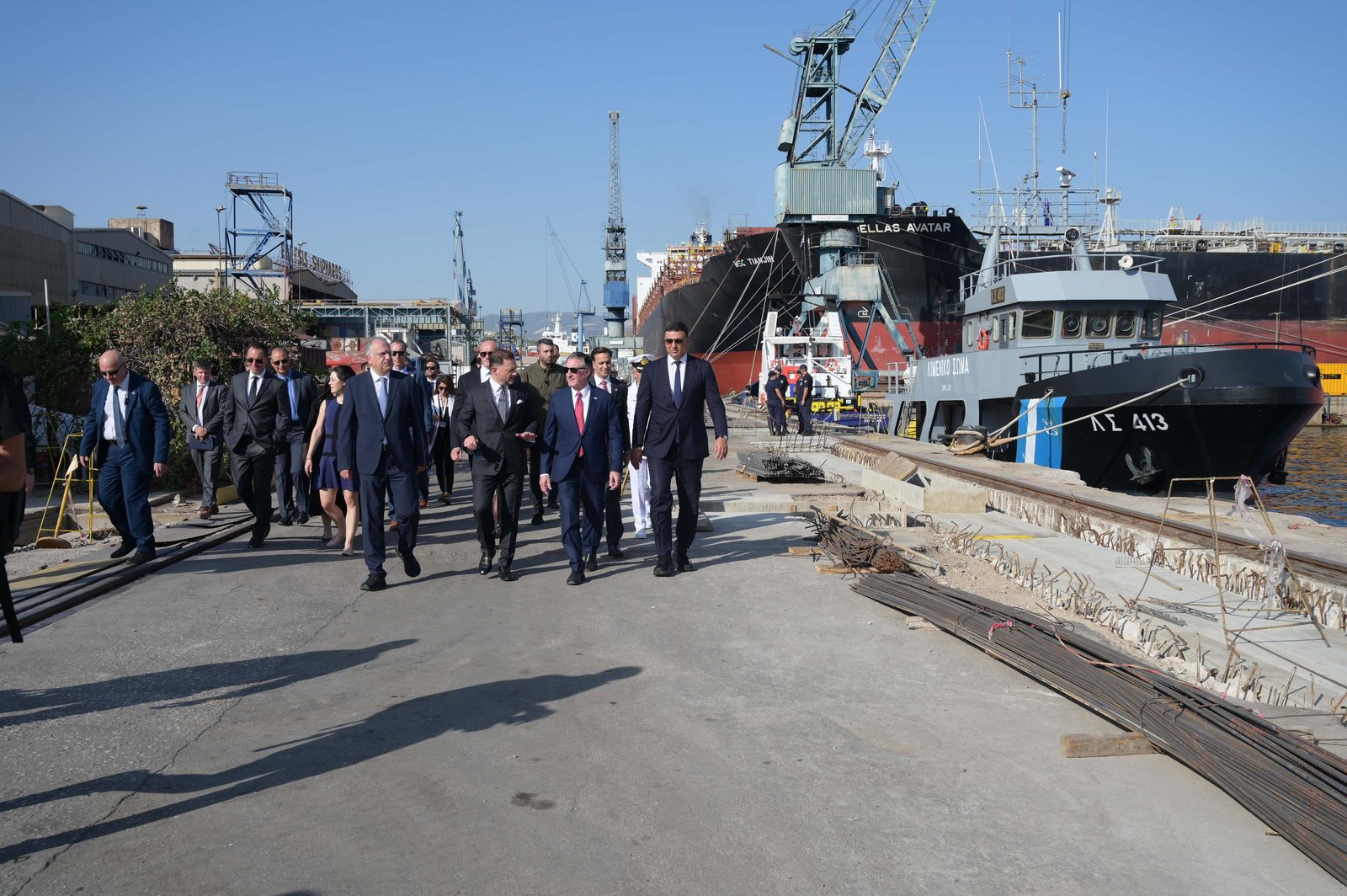 Ο Υπουργός Ναυτιλίας και Νησιωτικής Πολιτικής, Βασίλης Κικίλιας, συνόδευσε σήμερα το απόγευμα τον Υπουργό Εσωτερικών των Ηνωμένων Πολιτειών, Doug Burgum, κατά την επίσκεψή του στα Ναυπηγεία ONEX Ελευσίνας, παρουσία του Υπουργού Ανάπτυξης, Τάκη Θεοδωρικάκου και με τη συμμετοχή του Προέδρου και Διευθύνοντος Συμβούλου της ONEX, Πάνου Ξενοκώστα, καθώς και του Επιτετραμμένου της Πρεσβείας των ΗΠΑ στην Αθήνα, Josh Huck.