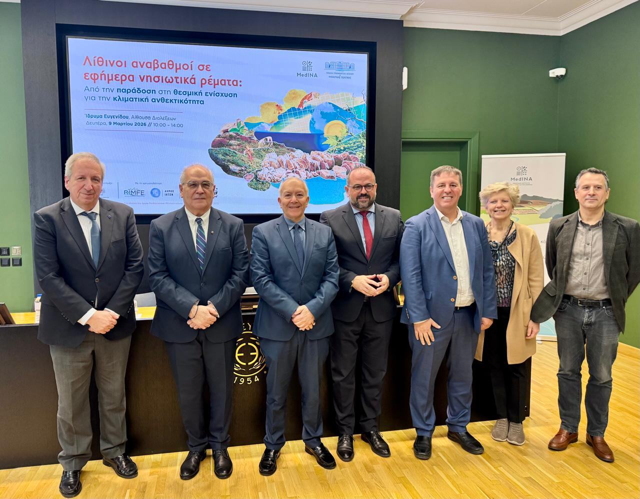 Τα πολλαπλά οφέλη και την αναγκαιότητα διατήρησης, προστασίας και κυρίως επαναφοράς των παραδοσιακών και διαχρονικών πρακτικών των νησιωτών μας, όσον αφορά στην διαχείριση των υδάτινων πόρων, με στόχο τον εμπλουτισμό του υδροφόρου ορίζοντα, τη μείωση του κινδύνου πλημμύρας και ξηρασίας, αλλά και την ενίσχυση της βιοποικιλότητας και της ανθεκτικότητας των νησιών μας, ανέδειξε η Ημερίδα “Λίθινοι αναβαθµοί σε εφήµερα νησιωτικά ρέµατα: Από την παράδοση στη θεσμική ενίσχυση για την κλιματική ανθεκτικότητα”, τις εργασίες της οποίας κήρυξε στο ίδρυμα Ευγενίδου, ο Υφυπουργός Ναυτιλίας και Νησιωτικής Πολιτικής, Στέφανος Γκίκας.