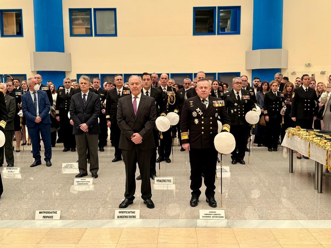 Στην τελετή στην οποία χοροστάτησε ο Θεοφιλέστατος Επίσκοπος Αχελώου, κ.κ. Νήφων ως εκπρόσωπος του Σεβασμιότατου Μητροπολίτου Πειραιά, κ.κ. Σεραφείμ, παρέστησαν επίσης ο Αρχηγός του Λιμενικού Σώματος – Ελληνικής Ακτοφυλακής, Αντιναύαρχος Λ.Σ. Τρύφων Κοντιζάς, ο Α' Υπαρχηγός Λιμενικού Σώματος - Ελληνικής Ακτοφυλακής, Αντιναύαρχος Λ.Σ. Χρήστος Κοντορουχάς, ο Β' Υπαρχηγός Λιμενικού Σώματος - Ελληνικής Ακτοφυλακής, Αντιναύαρχος Λ.Σ. Φώτιος Κιάμος, ανώτατοι και ανώτεροι Αξιωματικοί Λ.Σ. - ΕΛ.ΑΚΤ., επίτιμοι Αρχηγοί του Λ.Σ – ΕΛ.ΑΚΤ., καθώς και εκπρόσωποι της Ένωσης Αποστράτων Αξιωματικών Πολεμικού Ναυτικού και της Λέσχης Αξιωματικών Λ.Σ.