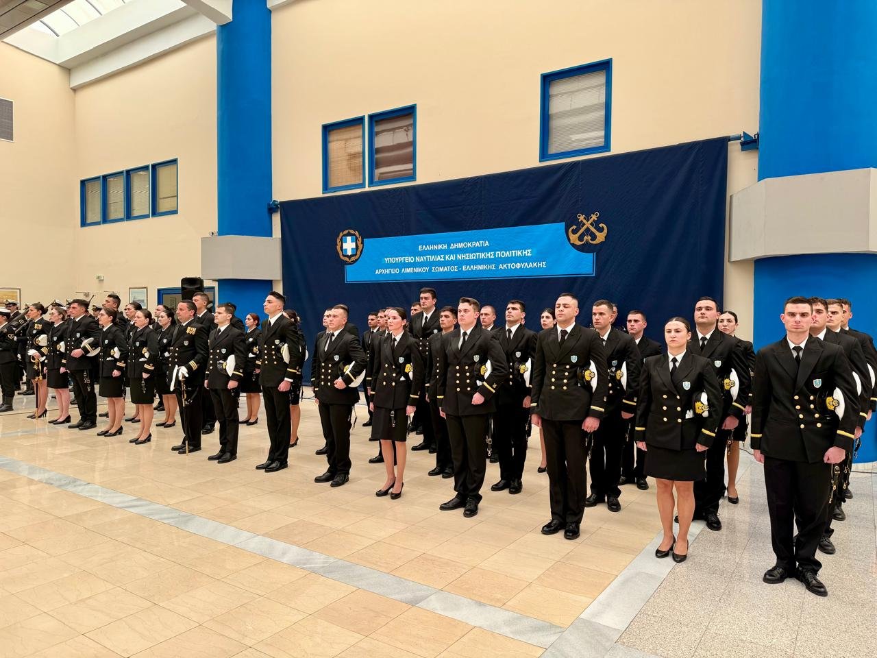 Τη σημασία ενίσχυσης του Λιμενικού Σώματος – Ελληνικής Ακτοφυλακής (Λ.Σ. – ΕΛ.ΑΚΤ.) με την ένταξη σε αυτό 29 νέων Σημαιοφόρων Λ.Σ.(απευθείας κατάταξης ειδικότητας Κυβερνήτη και Μηχανικού) και 15 Ανθυποπλοιάρχων Λ.Σ. (απευθείας κατάταξης ειδικότητας Νομικού, Οικονομικού και Υγειονομικού), επισήμανε ο Υφυπουργός Ναυτιλίας και Νησιωτικής Πολιτικής, Στέφανος Γκίκας, στον χαιρετισμό του, κατά τη διάρκεια της τελετής απονομής των ξιφών τους, που πραγματοποιήθηκε σήμερα στο κτίριο του Υπουργείου Ναυτιλίας και Νησιωτικής Πολιτικής.